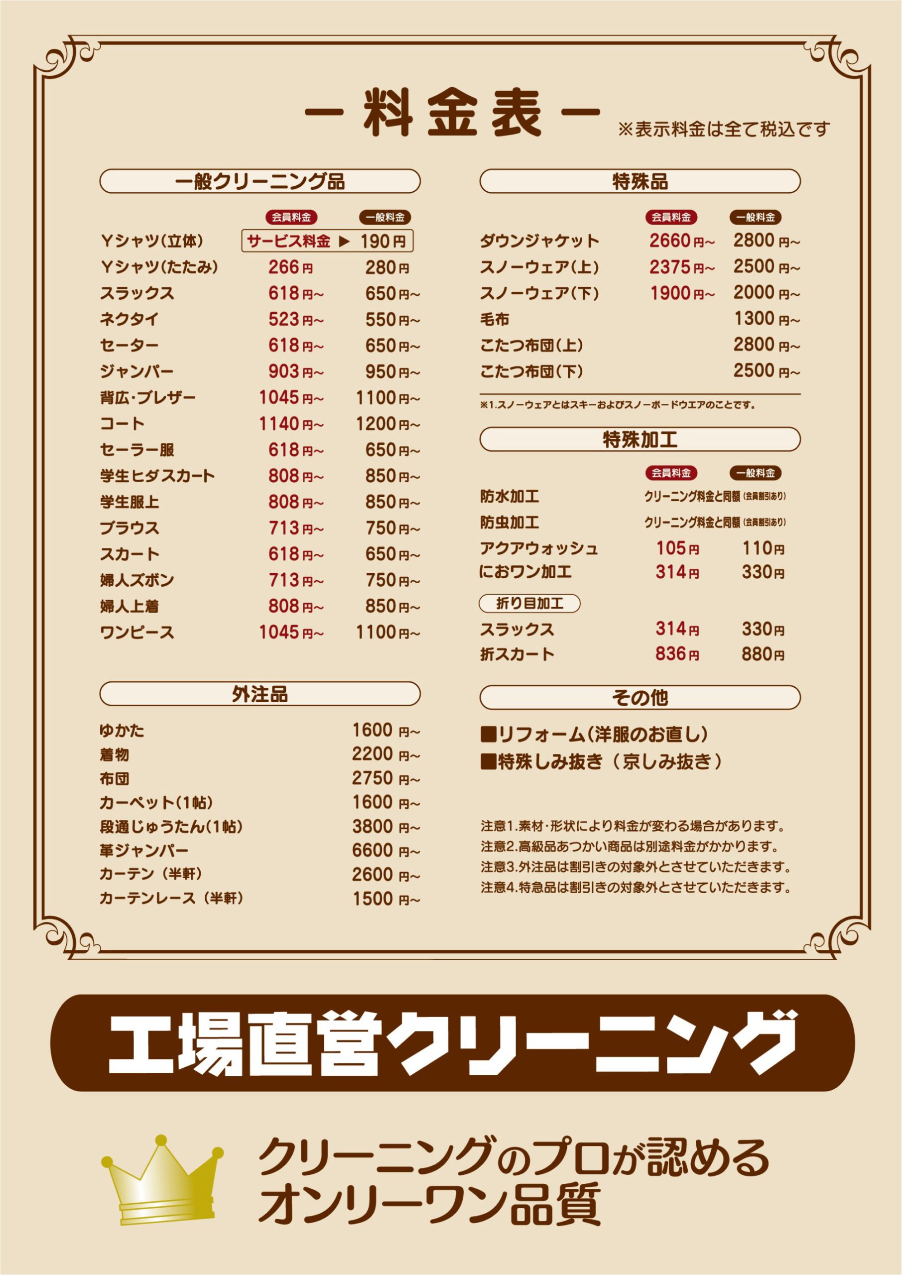 ・その他、高価な商品、高級ブランド品には高級クリーニングをご指定くださいませ。